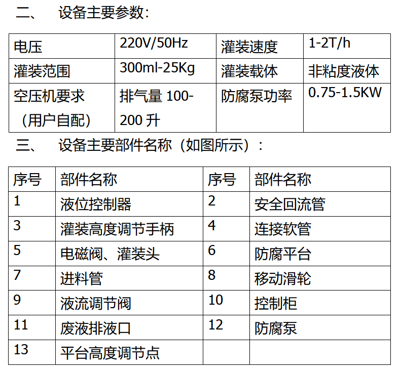 二、 設(shè)備主要參數(shù):